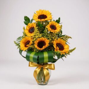 Lindo ramo de 6 girasoles envuelto en papel especial decorativo, listo para sorprender!