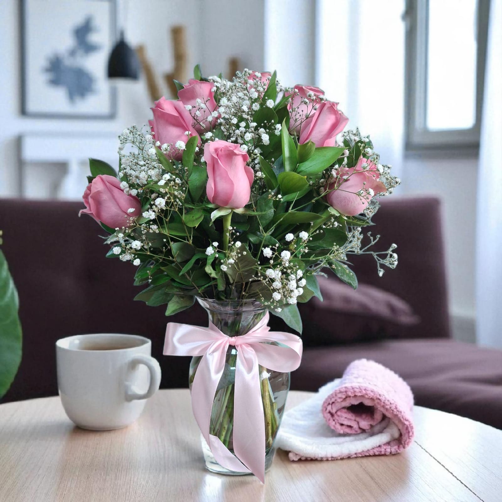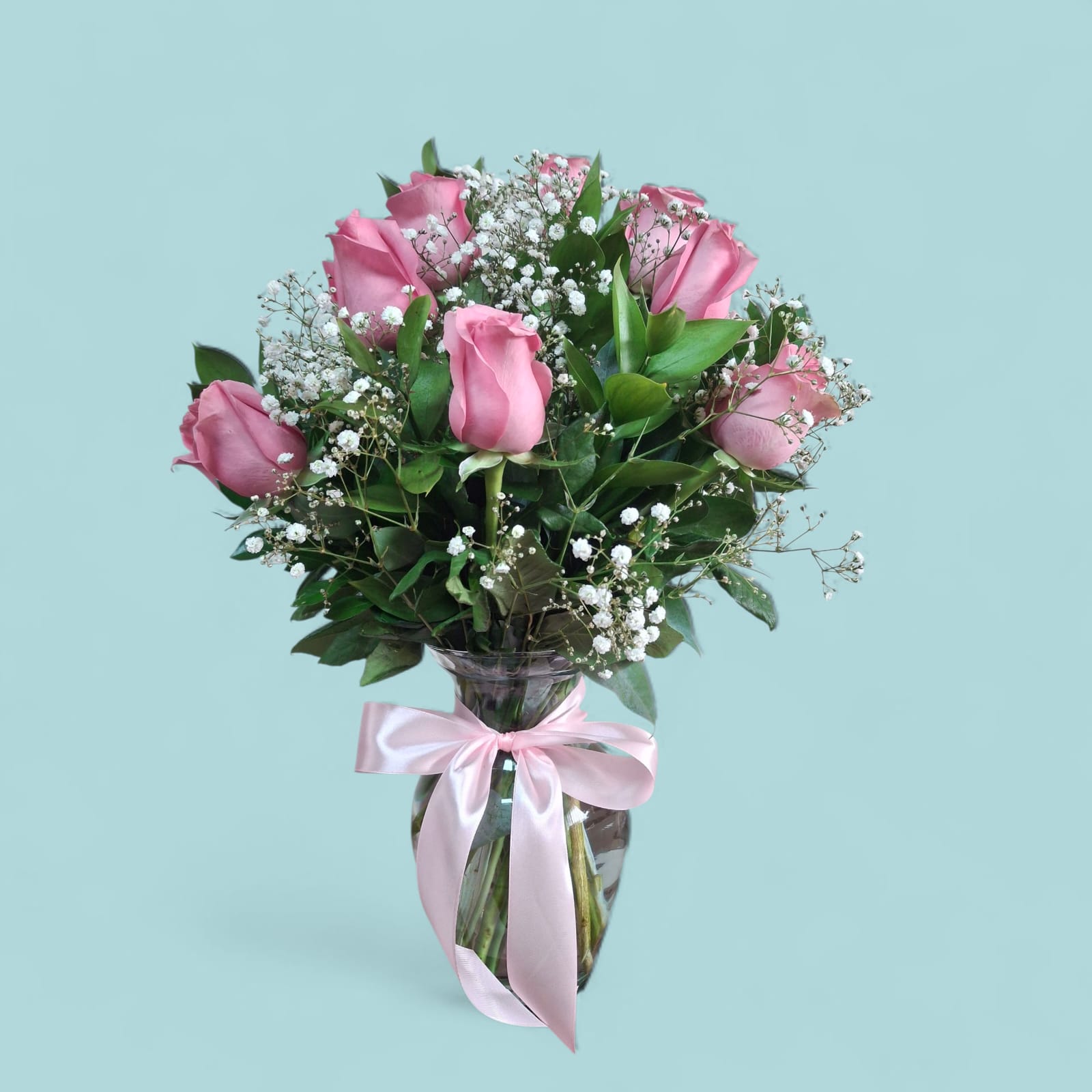 Un gesto de ternura y elegancia que nunca pasa desapercibido. Este florero presenta 12 rosas rosadas de tallo largo, cuidadosamente seleccionadas por su frescura y belleza, acompañadas por follajes finos que realzan su suavidad natural. Las rosas rosadas evocan cariño, admiración y dulzura, convirtiendo este arreglo en el detalle perfecto para cumpleaños, agradecimientos, celebraciones íntimas o simplemente para iluminar el día de alguien especial.
