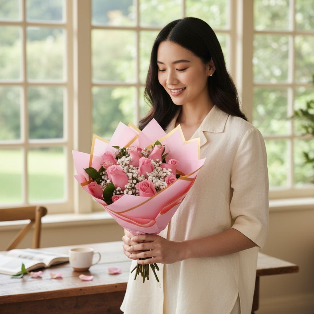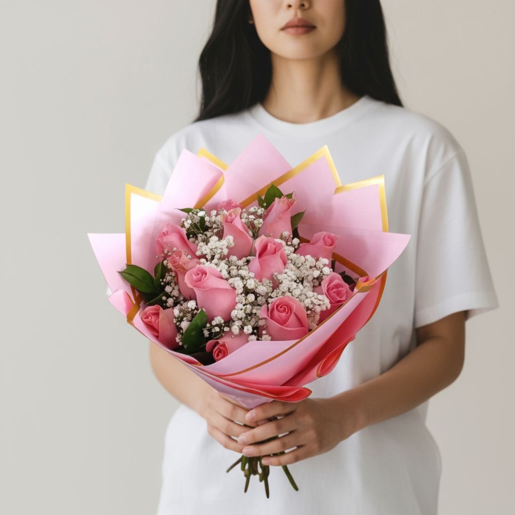 Una expresión de ternura, gratitud y belleza serena. Este ramo presenta 12 rosas rosadas de tallo largo, cuidadosamente seleccionadas por su frescura, suavidad cromática y forma perfecta. Las rosas rosadas evocan afecto sincero, admiración y dulzura, convirtiendo este arreglo en un gesto encantador que transmite emociones con elegancia y sensibilidad.